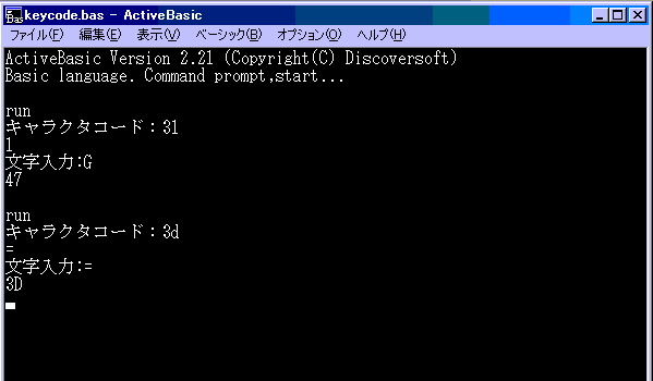 | asc | 文字のキャラクタコードを得ます | asc(文字列) |