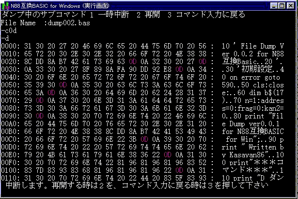なお、ほぼ同様の機能を持ったDUMPプログラムをアセンブラで組んだものを、姉妹サイトにある