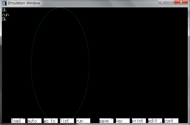 N88互換Basic for Winだときれいな真円になりますが、1ドットの縦横比の違いからF-Basicでは