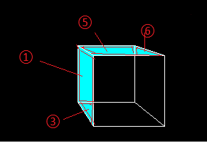 例えば立方体を右下に移動したときは以下の4個所に色を塗ります。