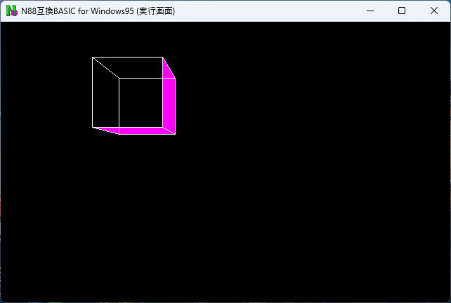 N88互換Basic for Winは表示画面縦横比が1:1なのでシンプルな数値になってます。