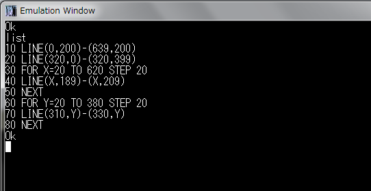 N88Basicの高分解モードのグラッフィック画面は、横×縦 640×400の画面になります。