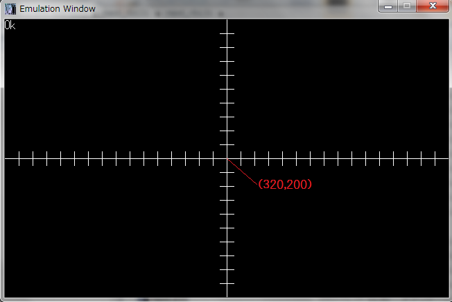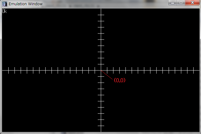 このプログラムを実行すると、画面の真ん中の原点の座標は(0,0)になります。