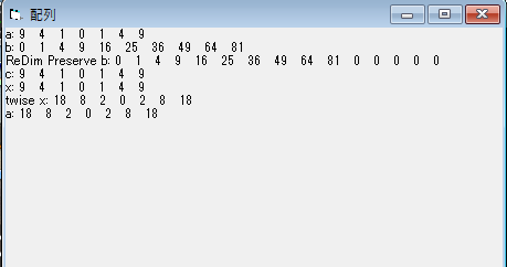 参照渡しなので、元の配列a()のほうも2倍になっていることを画面1で確認して下さい。