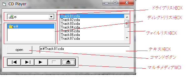 CDの場合は、Fromプロパティ(再生開始位置)にCDのトラックNo.を指定します。従ってファイルリストBoxから