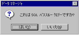 「はい」にすると、ODBCデータベースサーバにSQL文が送信され、そのデータベースエンジンでSQL文が