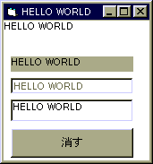 また、何かキーを押すとHELLO WORLDと表示し、コマンドボタンで消去するプログラムにします。