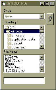 VB4で読み込める画像ファイルは、ビットマップ(.BMP)、アイコン(.ICO)、メタファイル(.WMF)