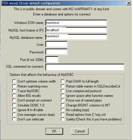 一番単純には、「TDX MySQL Driver default Configuration」で記入したWindows