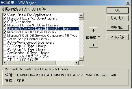 そして、以下の通りMicrosoft ActiveX data Object Library
