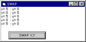 「SWAP」コマンドボタンをクリックするたびにX,Yの値が交換されている。