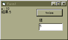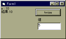FORM上にtwiseプロシージャのローカル変数aと、twise呼出し後のxを出力させています。