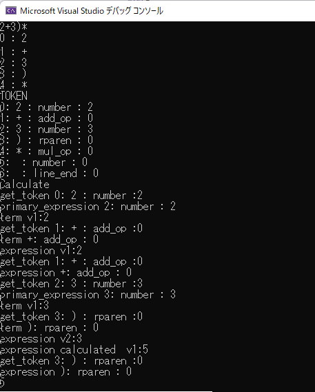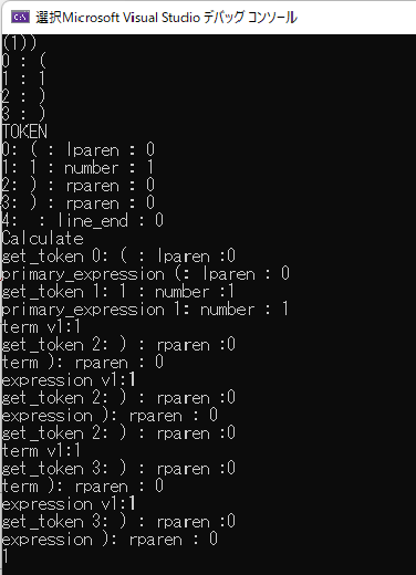 正常な式が入力されれば、関数primary_expressionはトークンとしては